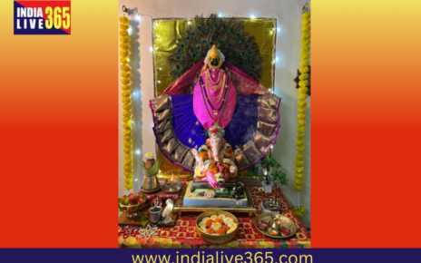 Full Name: Shravani Rajendra Kene City: Nashik Decoration Theme: The Kolhapur Mahalakshmi idol is gracefully adorned with vibrant peacock feathers and elegant sarees, creating a backdrop of divine splendor. The vivid colors and shimmering lights invoke blessings and fill the space with an aura of peace and devotion. The intricate arrangement of flowers, traditional jewelry, […]